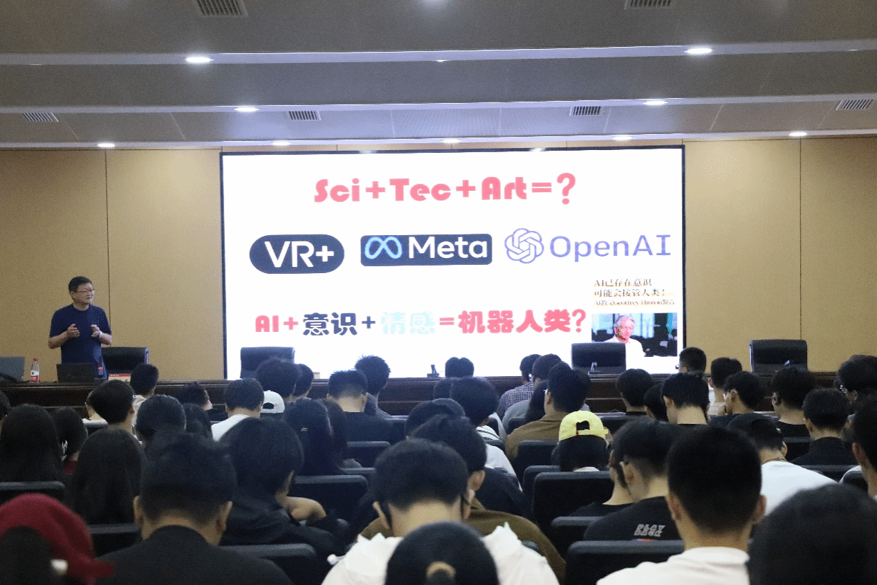 报告会上,淮永建简要介绍了元宇宙技术的发展以及Chat GPT人工智能大语言模型技术的发展,重点介绍了人工智能AIGC技术以及在数字动画内容创作方面的应用,并对未来基于元宇宙沉浸式交互技术、AI智能化建模和数字内容设计生产发展趋势进行了展望,探讨了未来艺术、科技和内容生产的融合方式以及数字艺术交叉学科的发展方向。