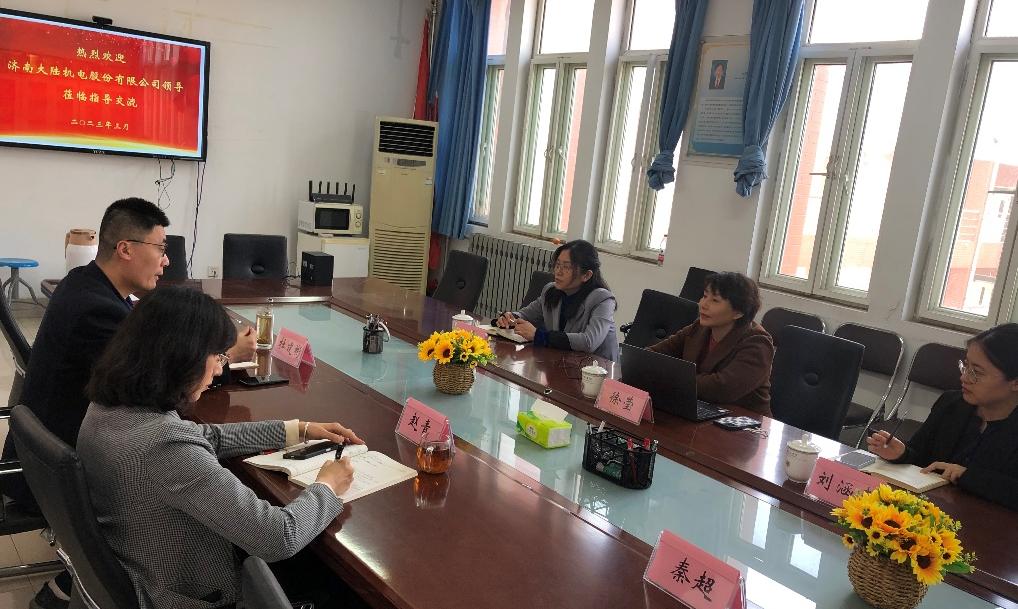 济南大陆机电股份有限公司副总徐莹对学院人才培养质量、服务地方经济的能力和办学实力给予了充分肯定和高度评价。希望能与学院就校企合作资源共享、项目研究和成果转化、开展职业技能培训、订单式人才培养等方面进行合作。