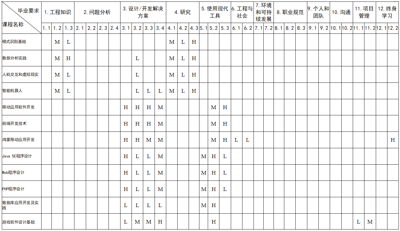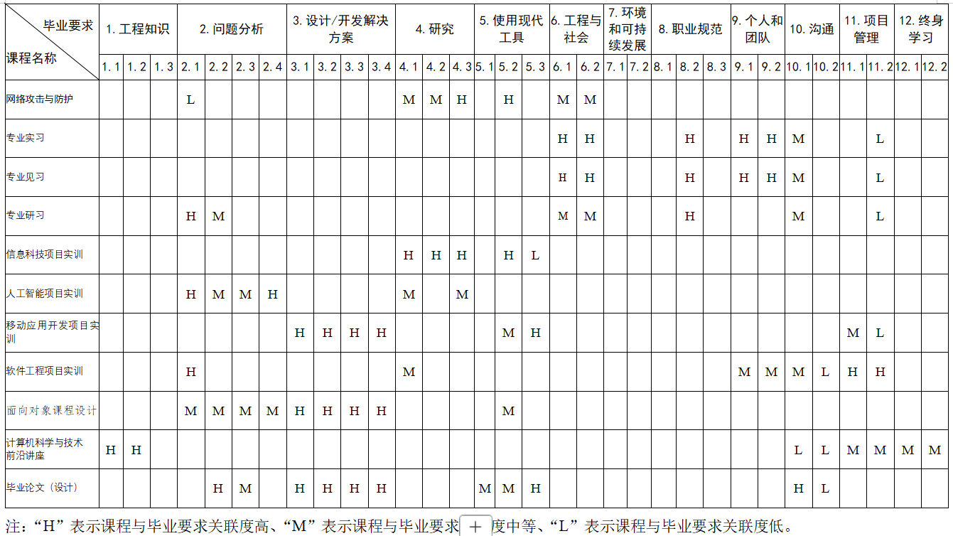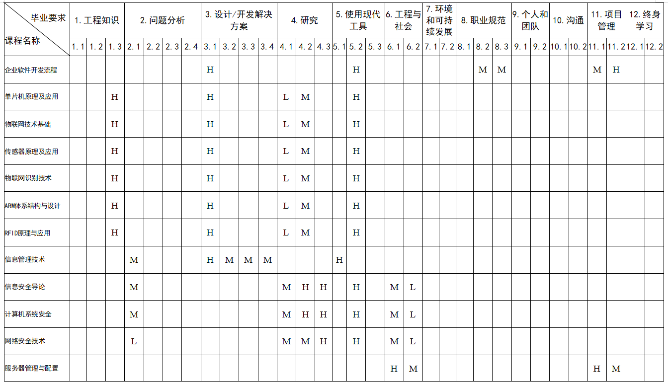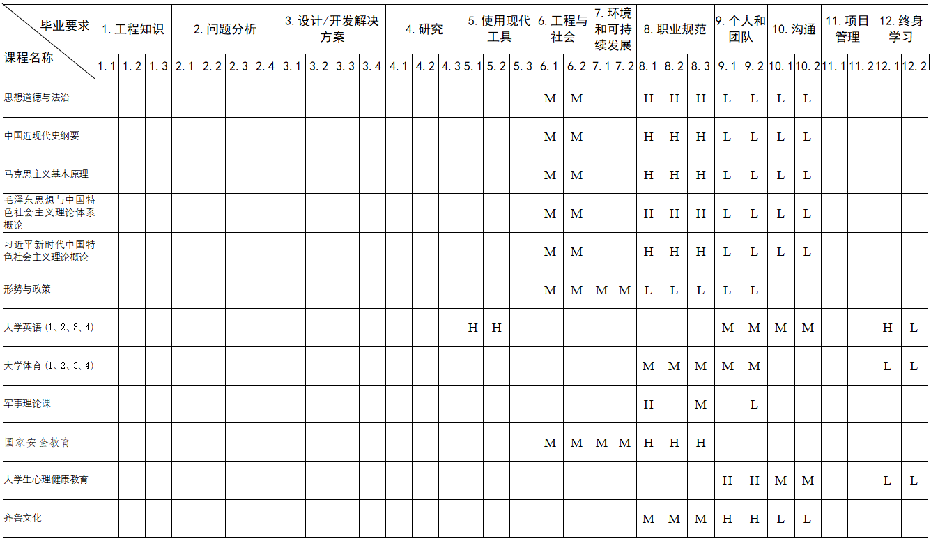 三、开设课程与毕业要求的对应关系矩阵