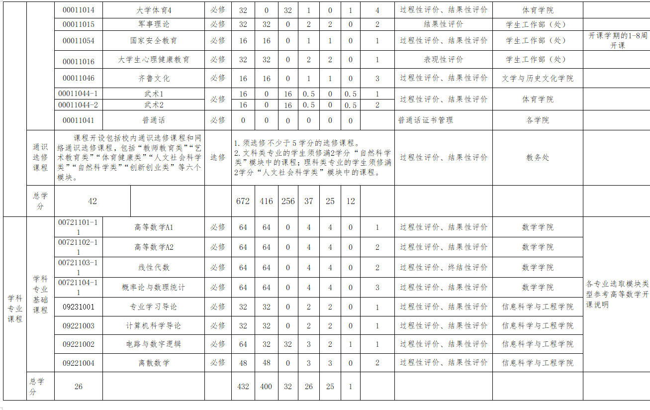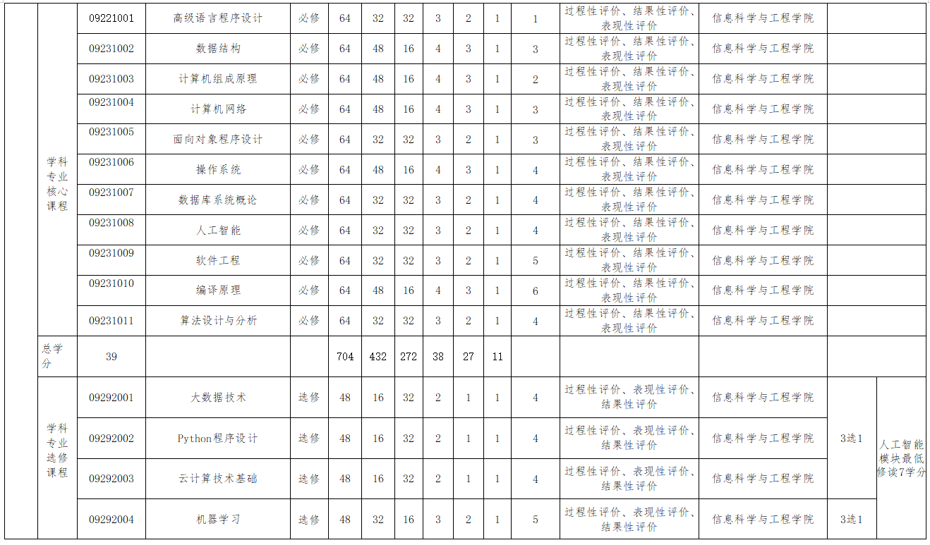 高级语言程序设计、数据结构、计算机组成原理、计算机网络、面向对象程序设计、操作系统、数据库系统概论、人工智能、软件工程、编译原理、算法设计与分析。