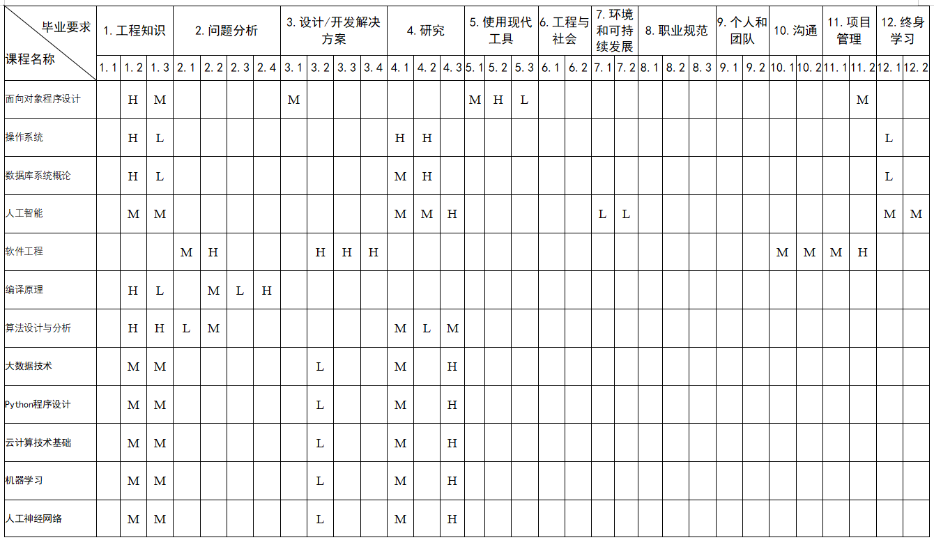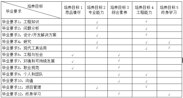 毕业要求对培养目标的支撑矩阵