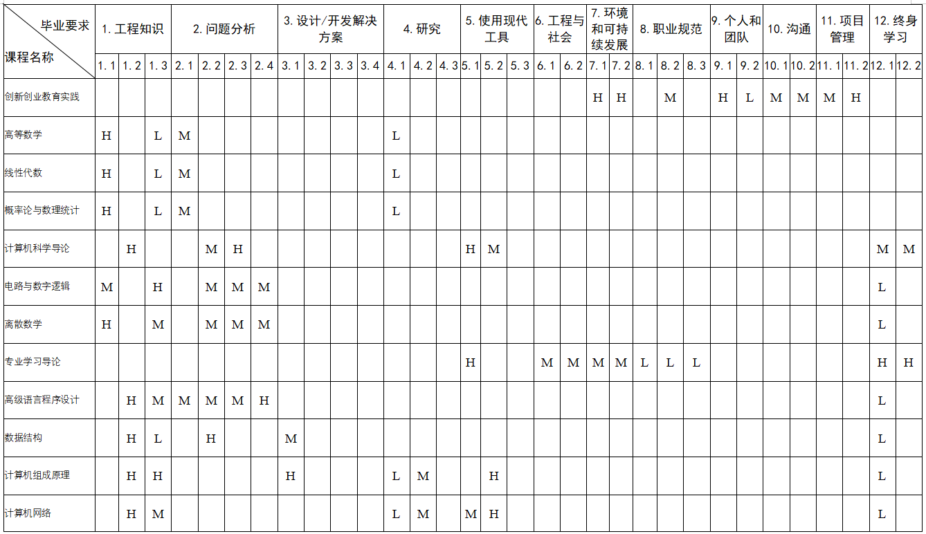 培养目标2.[专业能力]:具备满足工程实践需求的计算学科知识体系,能综合运用数学、自然科学、工程基础、项目管理和计算学科知识解决计算应用领域的复杂工程问题,能胜任软硬件开发、软硬件测试、运维工程师、技术支持、项目实施等计算机专业就业岗位。