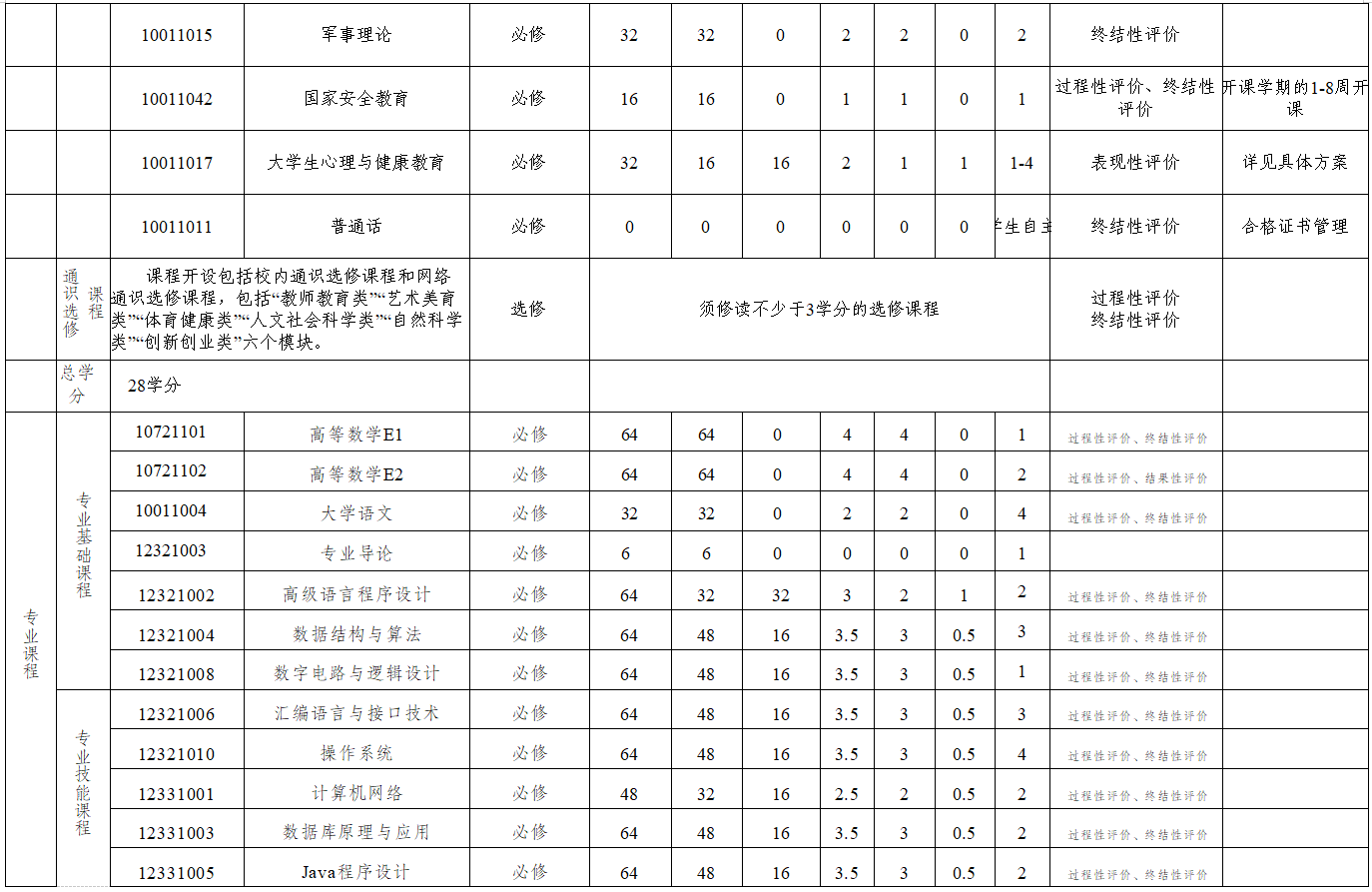 高级语言程序设计、数据结构与算法、操作系统、数据库原理与应用、计算机网络、 Java程序设计、 Java Web 程序设计、 Android程序设计。