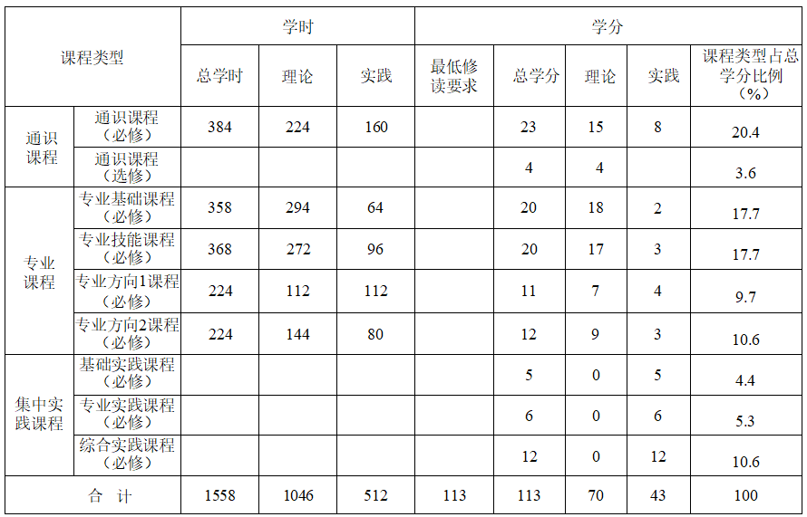 (三)各环节学时学分比例
