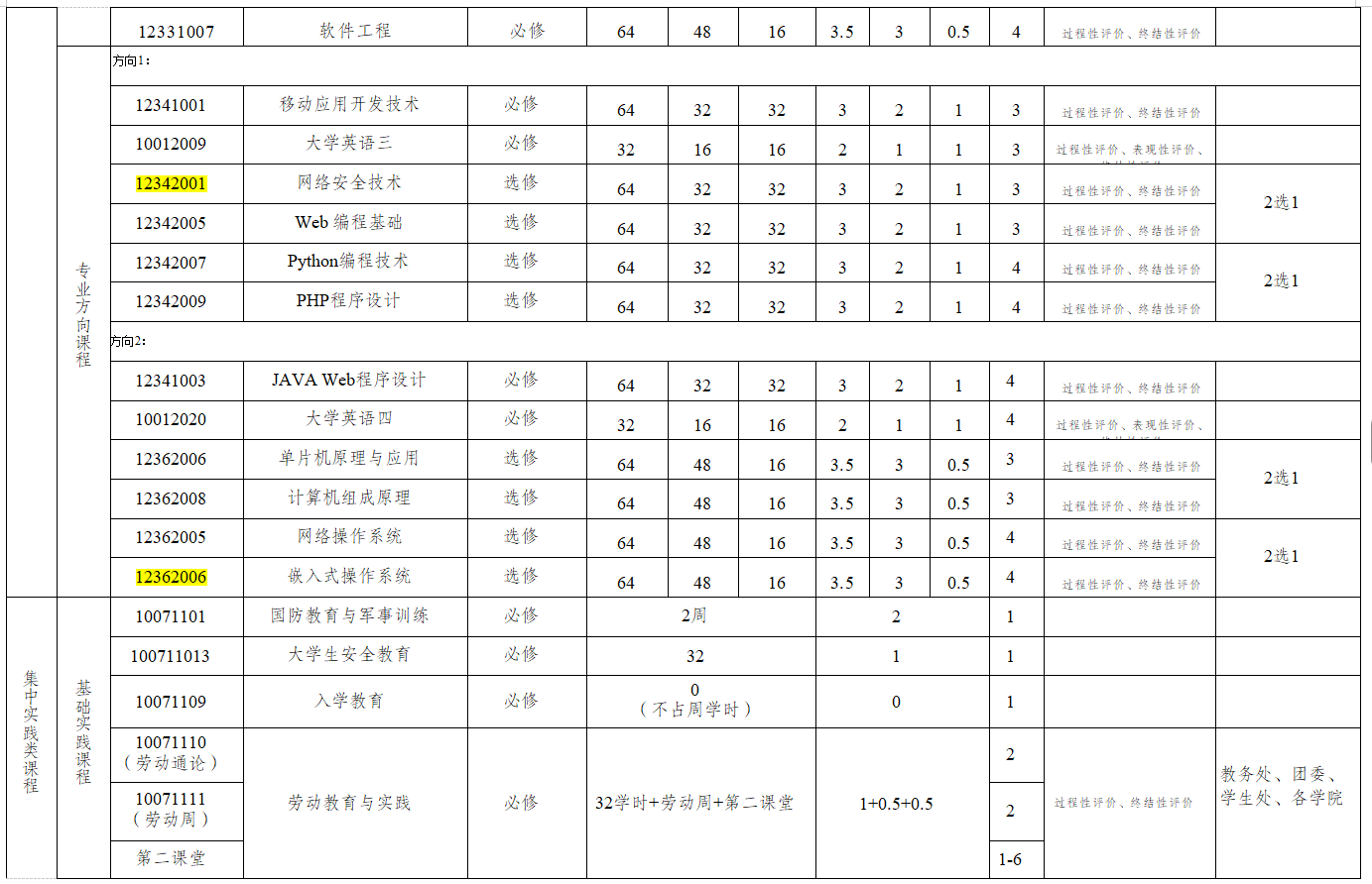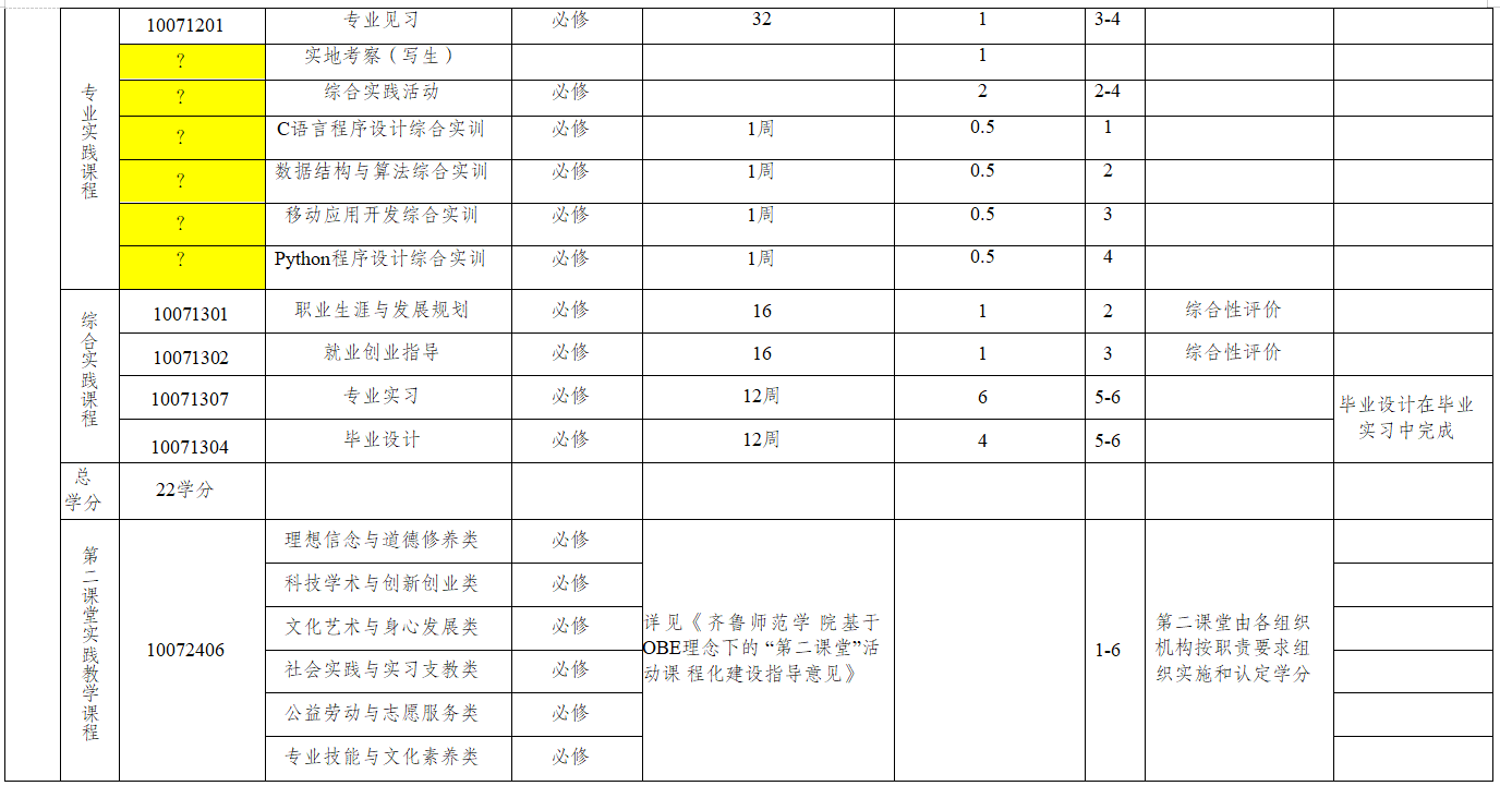 课程实验、项目实训、劳动周、第二课堂、专业实习、毕业设计(论文)等。
