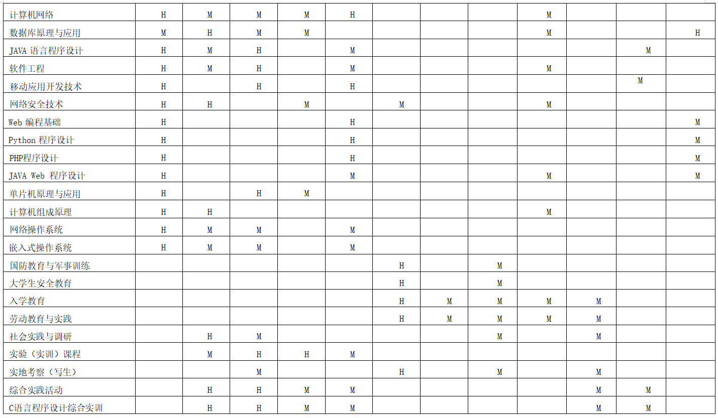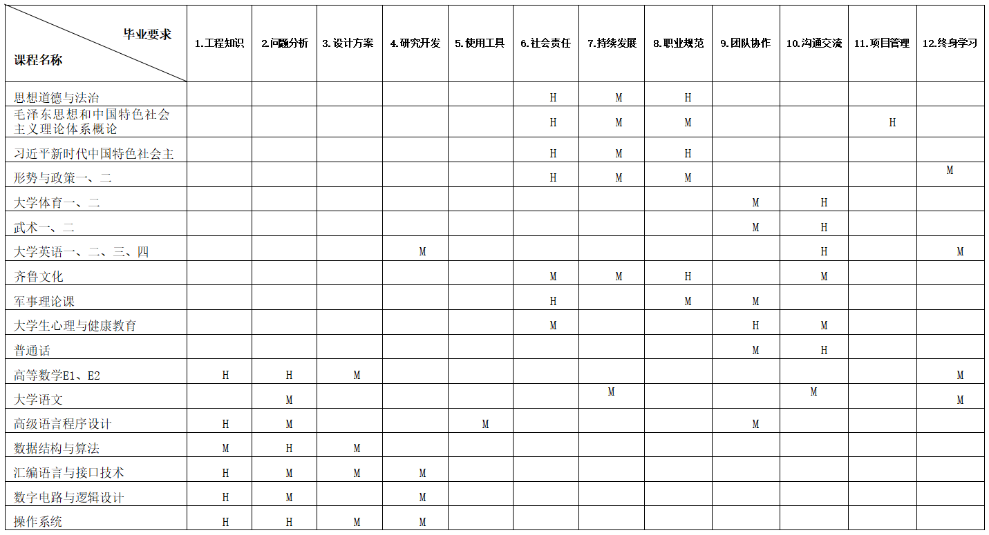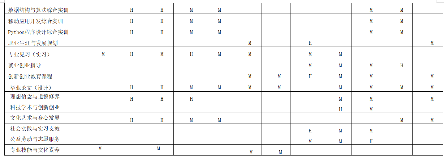 三、课程体系支撑毕业要求矩阵图