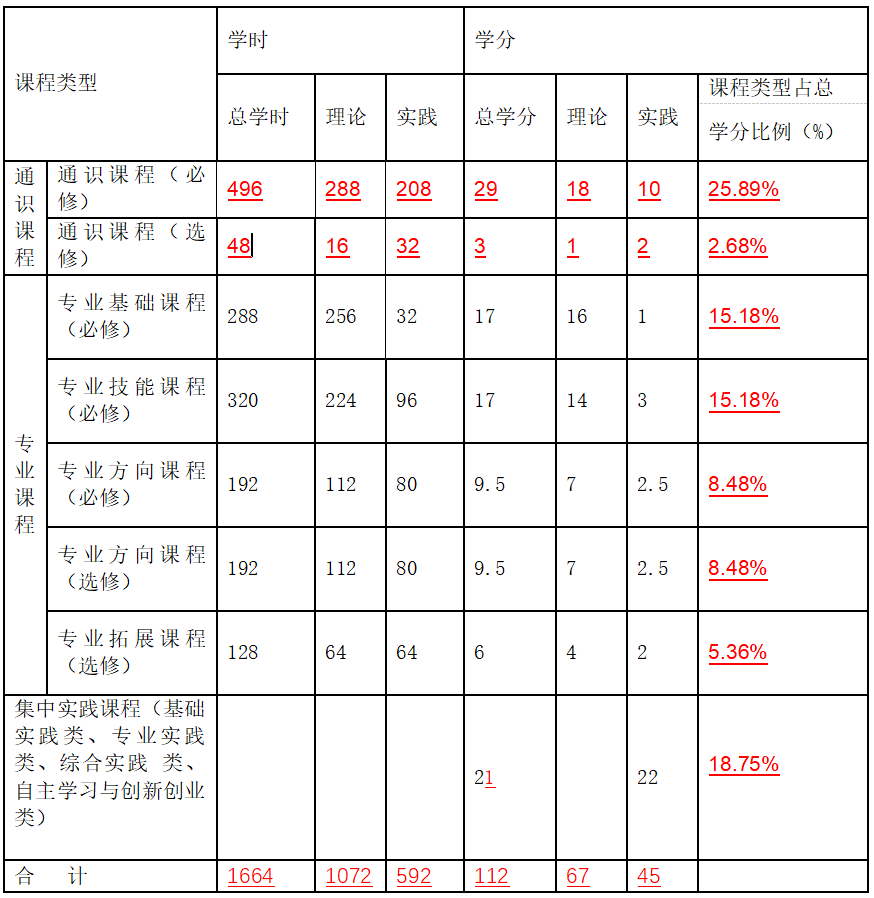 (四)各环节学时学分比例