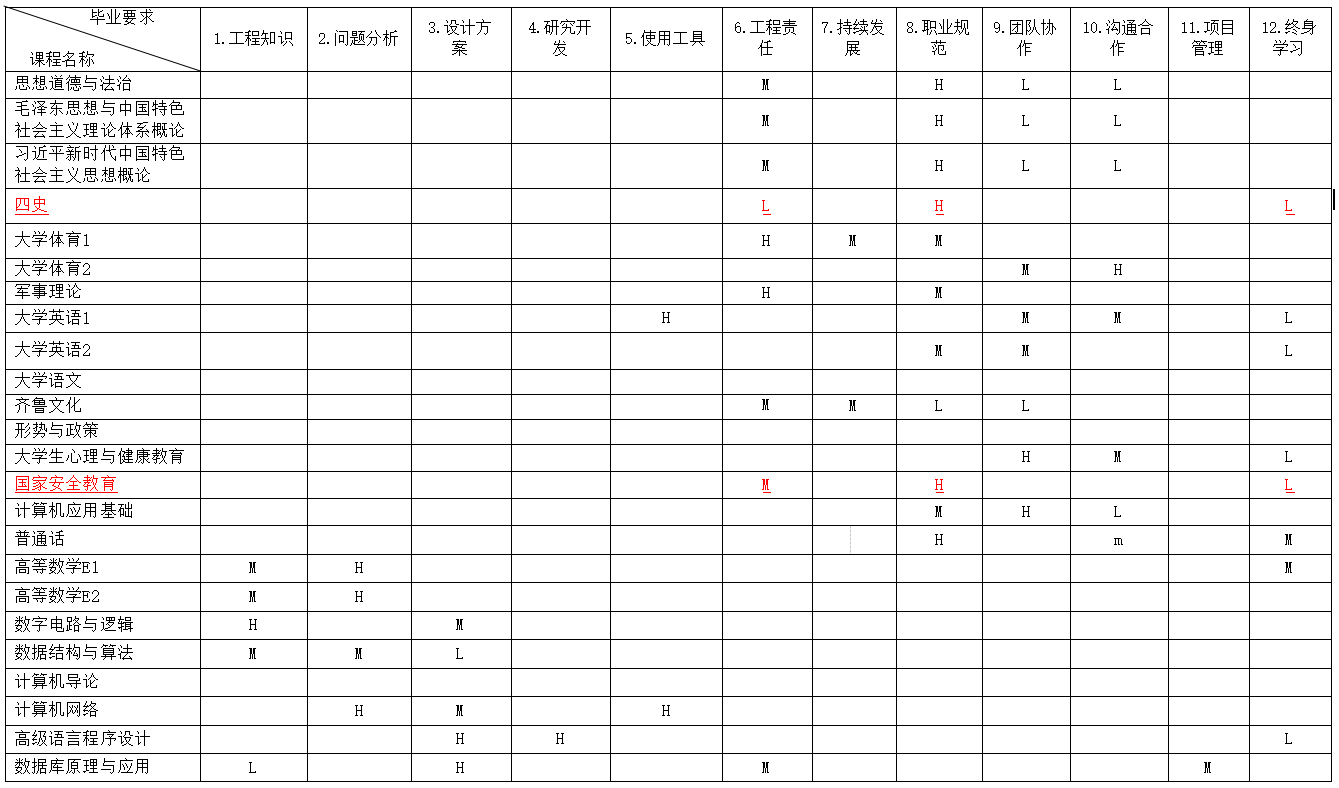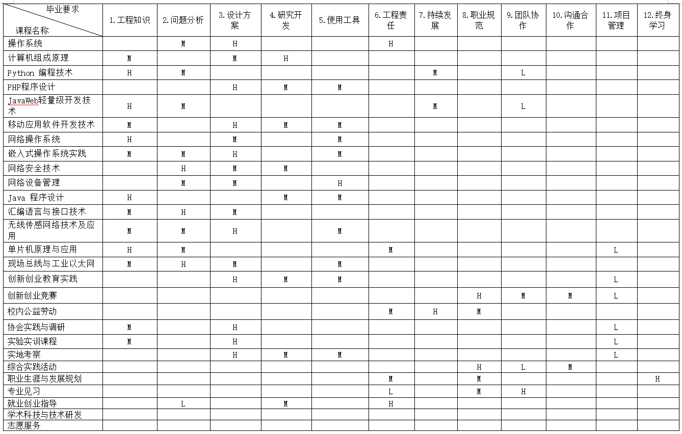 开设课程与毕业要求的对应关系矩阵