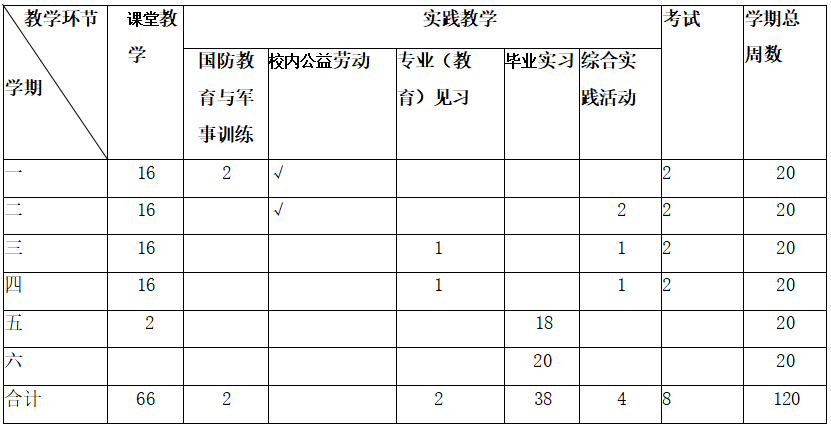 (三) 主要教学环节总体时间分配表(周)