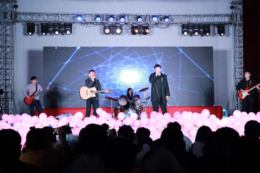 极具创意的小品《嗨,大学》以风趣幽默的动作、诙谐调侃的语言令在场观众捧腹,将全场火爆的气氛瞬间点燃;"信"乐队带来的歌曲《突然的自我+姑娘》,更是将晚会推向了高潮,他们深情款款的歌声、默契的表演引来了无数同学的掌声和欢呼声,SF社团带来的《特警力量》警披战装,栉风沐雨战金戈,一身正气弘扬卫国精神。