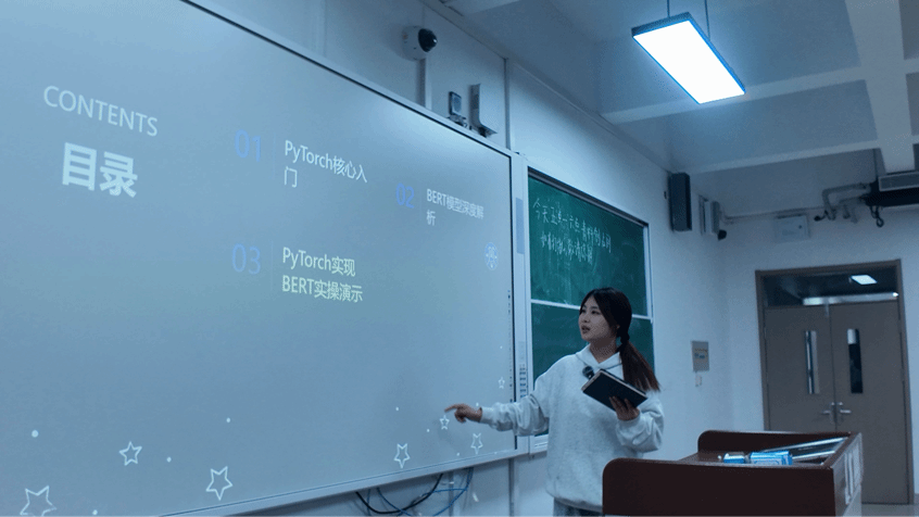 分享中,褚曦介绍“掌握核心工具与模型是青年科技工作者践行创新使命的基石”。她鼓励同学们将PyTorch的灵活性与BERT等大模型的强大能力相结合,在科研探索或项目开发中勇于实践,解决真实世界的问题,将技术学习转化为推动科技进步的实际贡献。