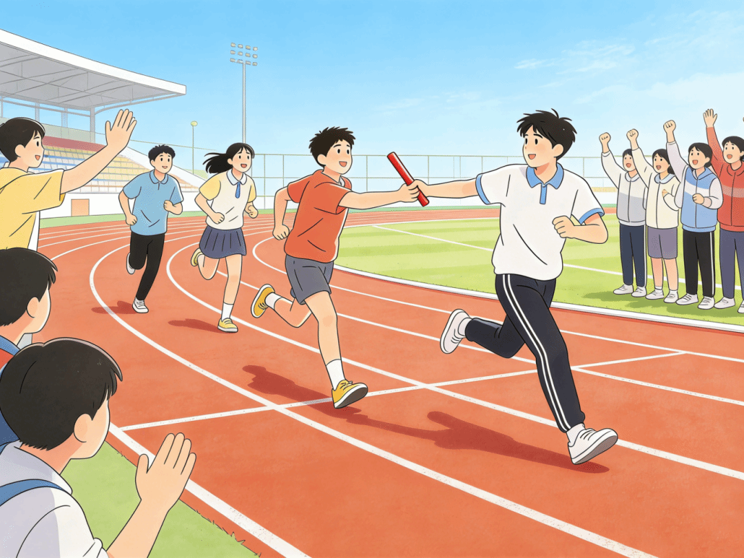 运动场上,并肩拼搏、奋勇争先,