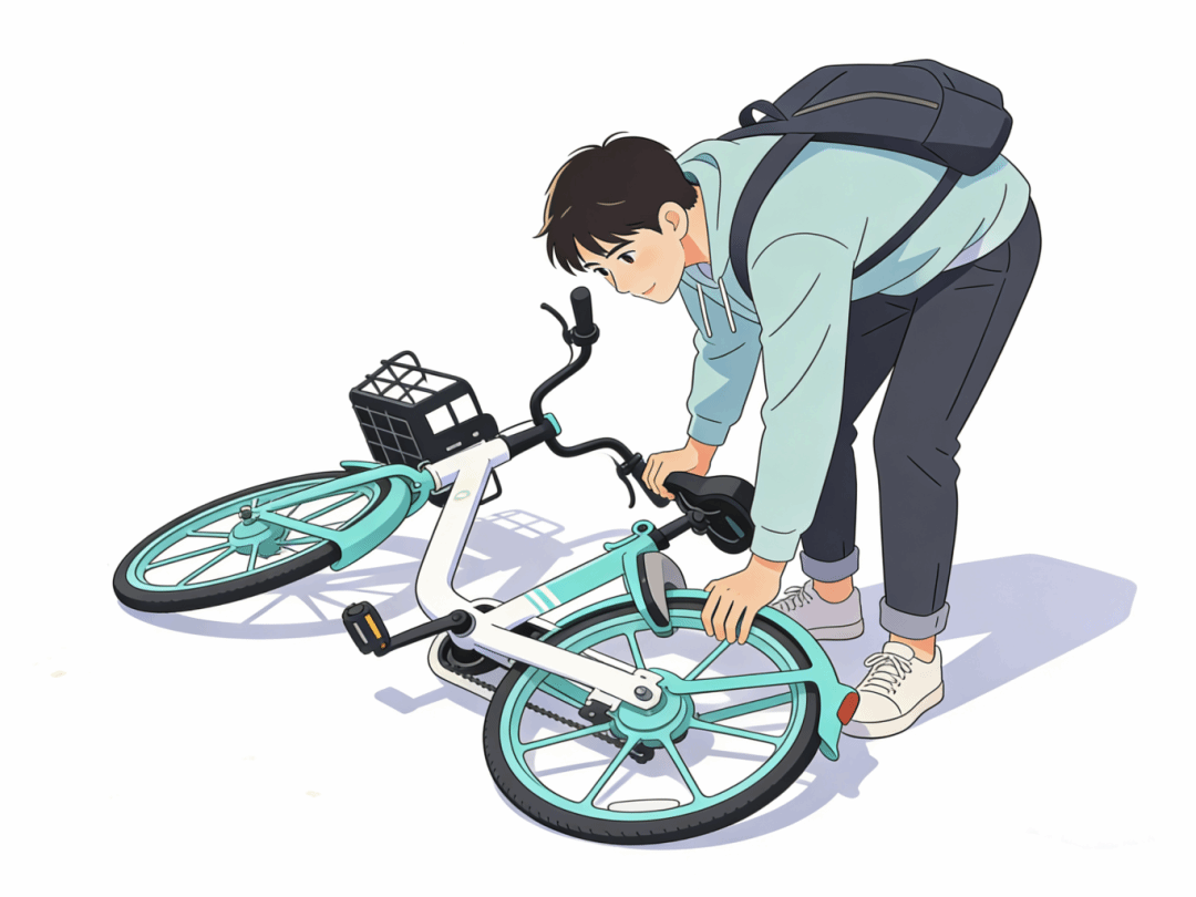 偶遇倒地单车,顺手扶起、摆放整齐;