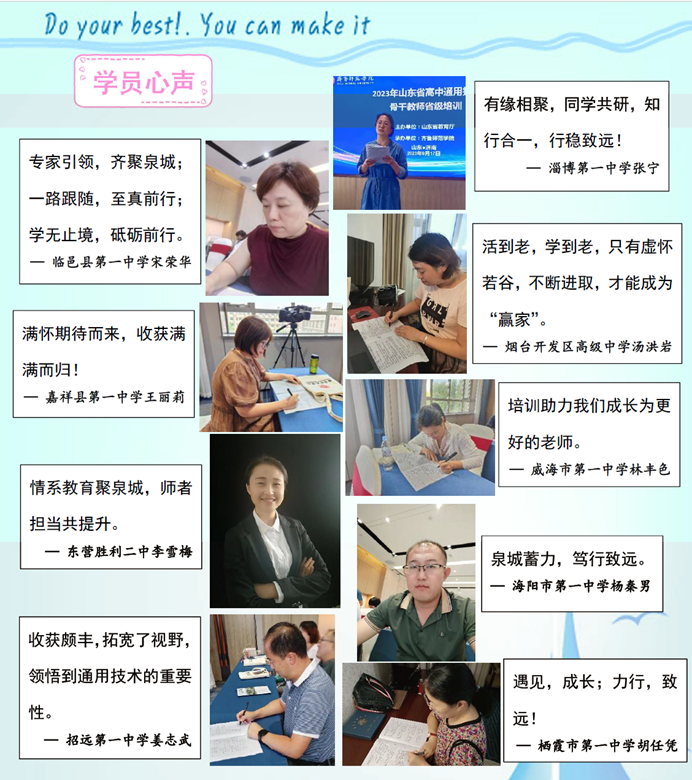 为期五天的培训是一面面的专家引领、一场场的头脑风暴和一次次的同行交流,参训教师们高涨的学习热情反映了真挚的教育情怀,并通过学习笔记、反思复盘和学习感悟的形式总结了学习收获和工作反思。