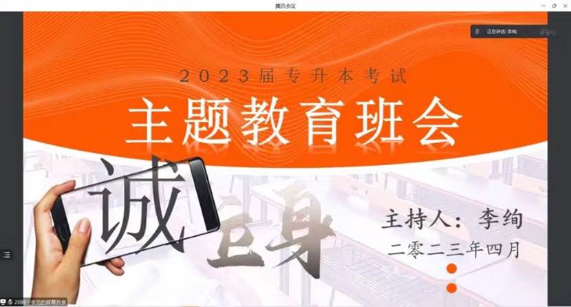 2023年山东统招专升本考试进入倒计时,为助力学生“赢”战专升本考试,缓解学生考前焦虑,帮助考生调整备考状态,引导学生树立信心,以积极乐观的心态迎接考试,4月20日,yl6776永利集团开展2023届专升本主题教育班会,班会由2023届专科辅导员老师李绚主持,2023届全体专升本考生参加。