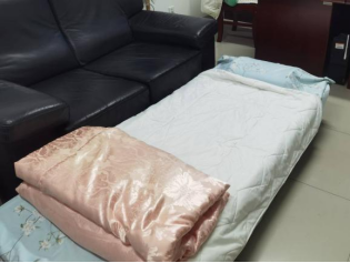 办公室、会议室的沙发上、狭窄的折叠床上、私家车的座位上,他们蜷曲着身体,席地而卧,用实际行动演绎了“斯是陋室,惟吾德馨”。