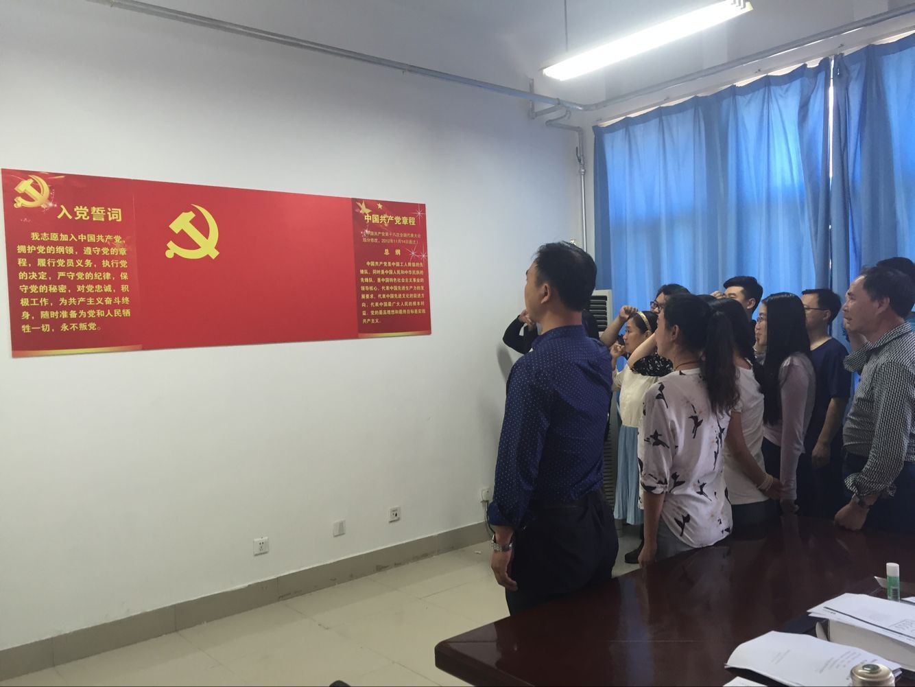 yl6776永利集团教工党员通过参加“两学一做”学习教育,重温入党誓词,共同学习党章,受到了一次深刻的党性洗礼,组织观念和党员意识进一步增强,理想信念更加坚定。