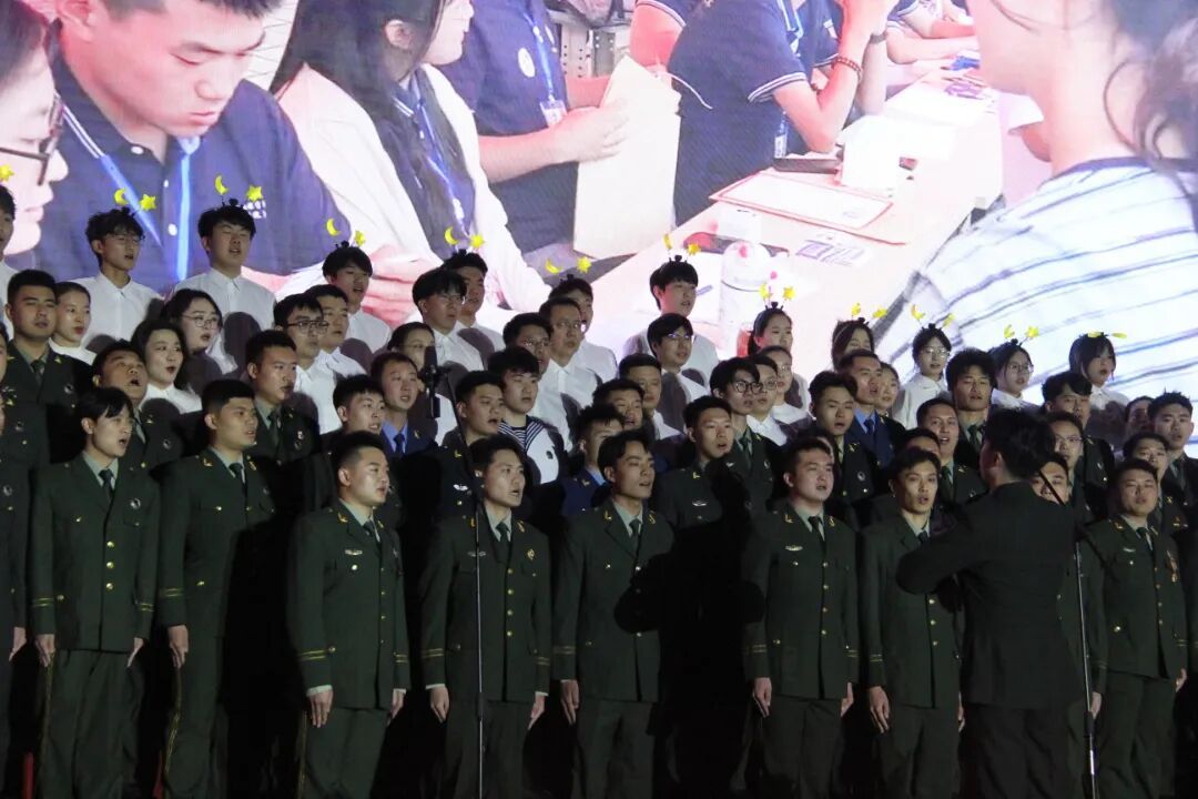 演出中,信科师生们先后演绎了《不要慌太阳下山有月光》与《祖国不会忘记》两首作品。在《不要慌太阳下山有月光》的演唱中,师生们以沉稳而温暖的演绎,传递出抚慰人心的力量与逐光前行的从容;继而以《祖国不会忘记》的铿锵之声,致敬无名英雄的崇高奉献与赤诚担当。两曲联袂,用歌声铺就一条从温暖到磅礴的情感之路,生动诠释了从“向光而行”的自我鼓舞到“被历史铭记”的精神升华,展现了我院师生承志笃行、积极向上的时代风貌。