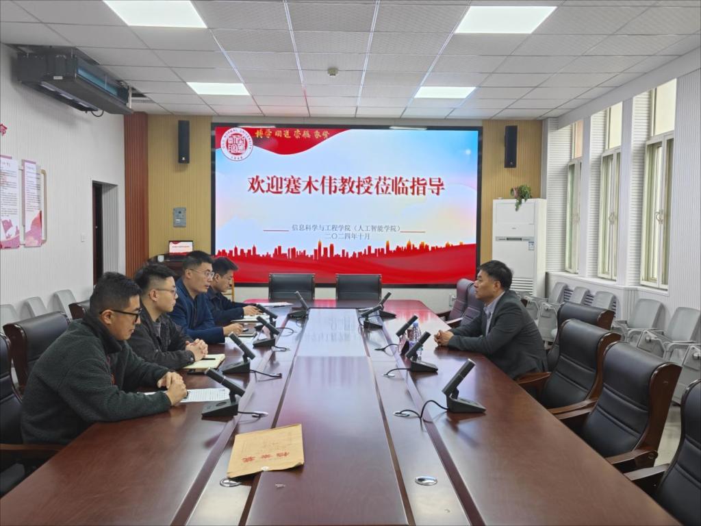 蹇木伟对学院近年来高质量发展举措给予认可,赞扬了全体师生团结奋进、勇于担当的精神。他表示,感受到学院具有深厚干事创业的蓄能,建议利用好自身优势,结合当前人工智能产业发展需求,走错位发展和特色发展的道路,并与会教师围绕科研团队建设、国家和省自然基金项目申报、青年教师成长等方面进行了交流,在学科建设、人才培育机制创新、科研成果培育、青年教师发展培育方面给予很多具有建设性诚恳的建议。