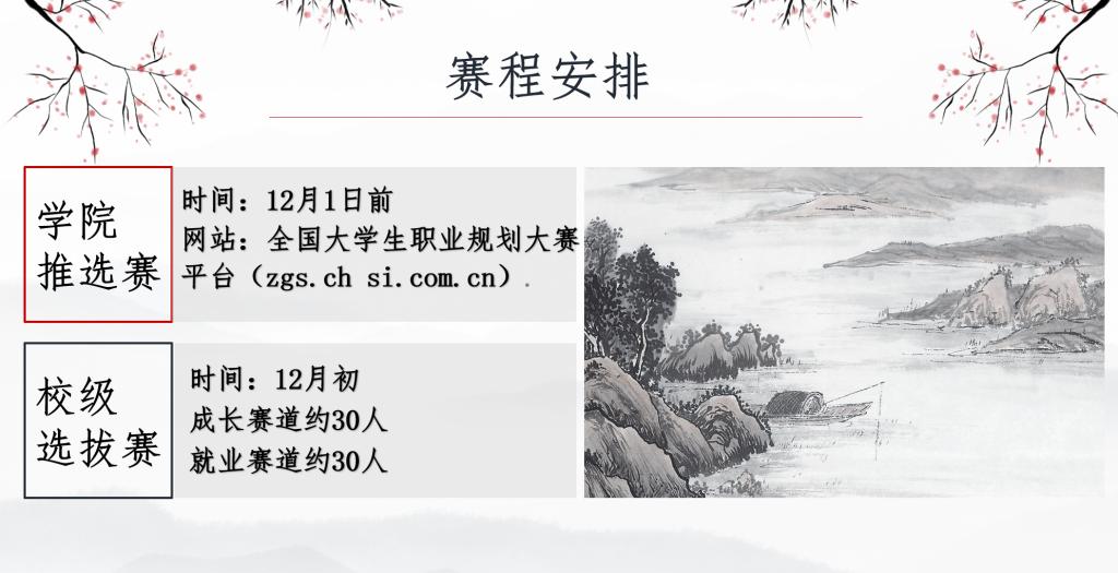为强化我院大学生职业规划意识,考察学生职业发展规划的科学性,帮助大学生找准自身发展就业方向,提高综合素质和能力,树立学习意识、目标意识、就业意识。yl6776永利集团举办以“筑梦青春志在四方,规划启航职引未来”为主题的大学生职业生涯规划大赛。