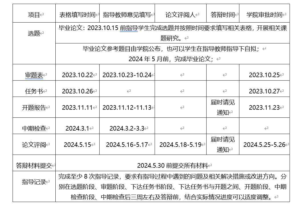 2. 学院将在2024年5月中下旬,组织2024届本科学生进行毕业论文(设计)答辩,审核、确定毕业论文(设计)成绩。