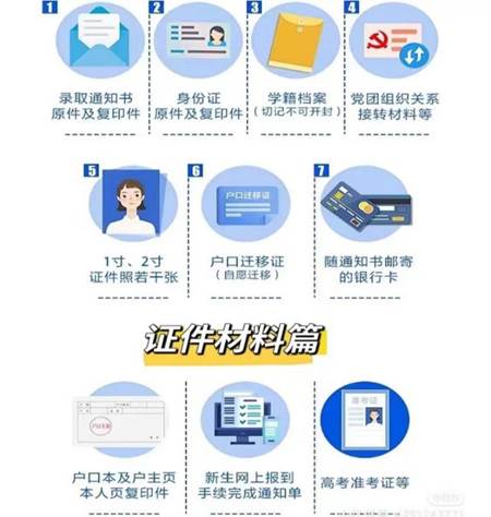1、录取通知书、准考证、有效期内的居民身份证。