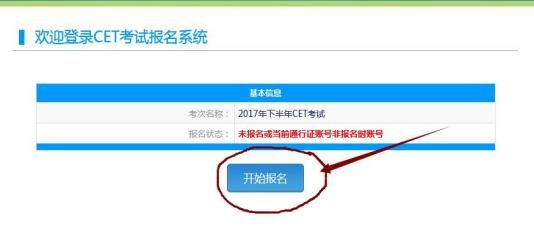 4) 成功登陆 CET 考试报名系统后,点击“开始报名”。