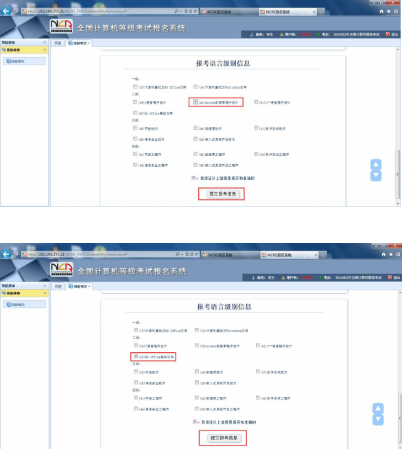 2.考生要仔细查看报考界面各项提示,认真填写并核对报考信息,确认无误后再进行缴费。缴费后,考试费无法退还,身份证件号码、考点、报考科目等关键信息不能改动。考生需对自己所填报的各项信息的真实性、有效性和规范性负责,避免因信息填报有误而无法参加考试或成绩无效的情况出现。