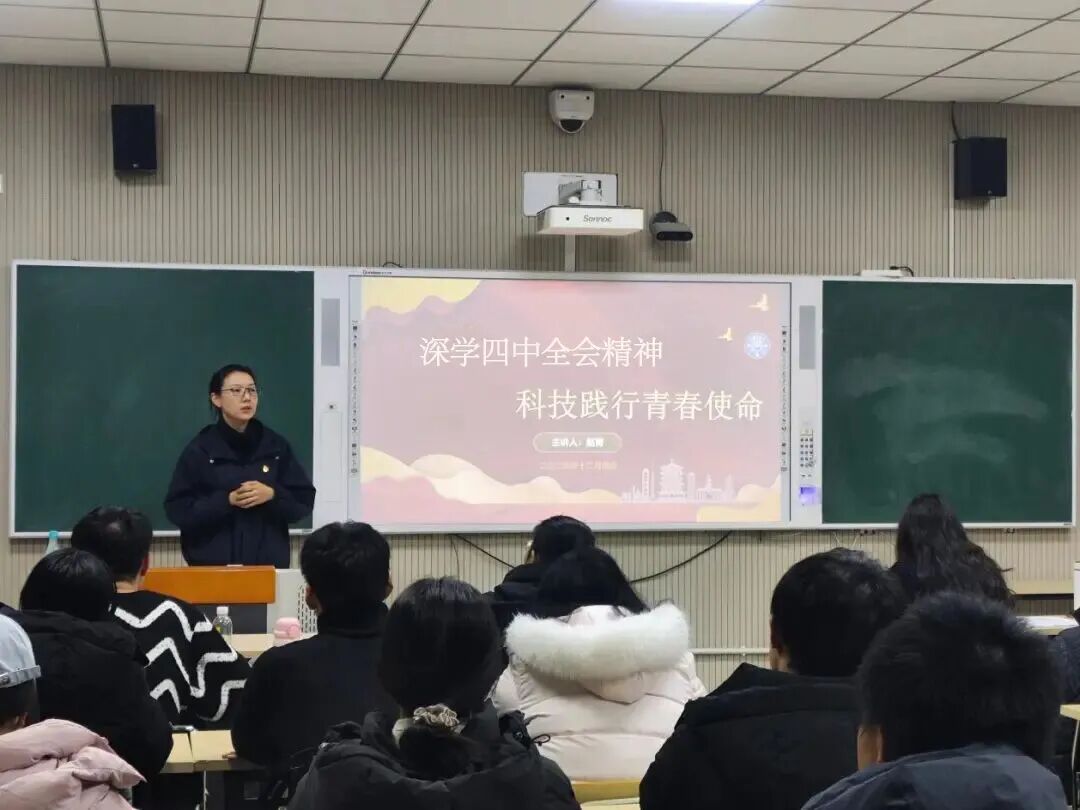 为深入学习贯彻党的二十届四中全会精神,推动全会精神在青年群体中走深走实,近日,yl6776永利集团党委书记赵青以《深学四中全会精神,科技践行青春使命》为题,为学院学生党支部党员、团学骨干讲授专题党课,引领信科青年把握时代机遇、投身科技强国实践。