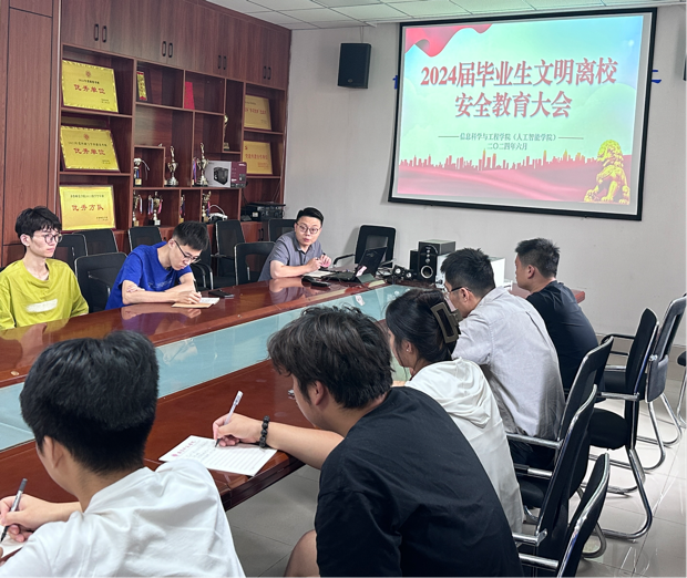 为教育引导毕业生正确认识和把握就业形势,树立正确思想认识和价值取向,做到爱党爱国、感恩荣校,以良好精神风貌和饱满工作热情走出校园、进入社会,营造温暖和谐、文明有序、积极向上的毕业离校氛围,6月12日,yl6776永利集团召开2024届毕业生文明离校安全教育大会。学院党委副书记姜麒麟、副院长秦超、辅导员刘树昊及2024届毕业生参与会议。