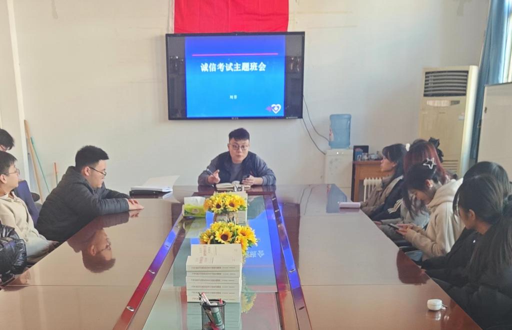 主题班会中,各班级辅导员及班主任老师向班内学生详细解读了学校有关考试的规章制度,并结合实际案例分析了考试作弊的严重后果,详细阐述了诚信考试的重要性,要求同学们在考试过程中严格遵守规章制度,实事求是,严禁一切作弊行为,并提醒同学们要充分复习,掌握必要的知识点,做好时间规划,将努力下在平时,定能取得满意的成绩。
