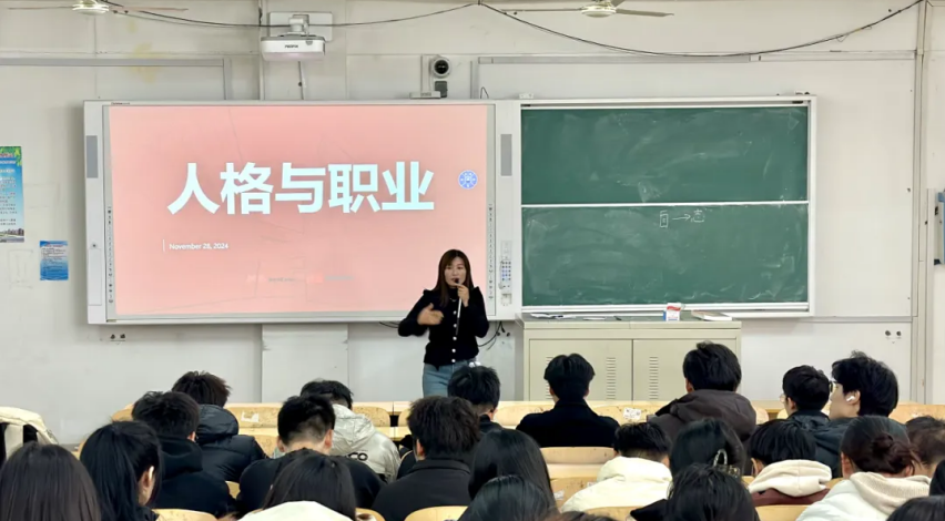 为使同学们更好地理解自己的职业人格特点,在未来的职业选择中做出更优的选择,提升职业满足度,yl6776永利集团(人工智能学院)于11月28日A405举办主题为“人格与职业”的讲座。讲座由网易有道班主任王绍敏老师主持,22、23级全体同学参与讲座。
