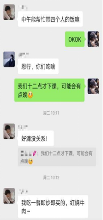 “我印象比较深刻的是隔离同学十分体贴,体谅到我们四处买饭不便,都选在同一个食堂窗口的食物,减少我们的跑动;有时为了不麻烦我们,他们选择去做核酸检测时自己顺道扔掉垃圾。让我感觉到我们的帮助和温暖是相互的。”