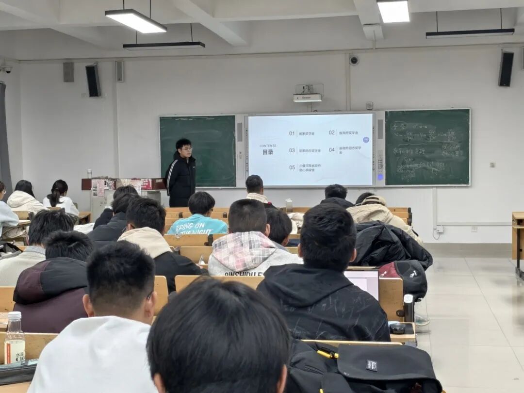 会上,宣讲人对各类奖学金申报政策与评定标准展开详细解读。围绕国家奖学金、省政府奖学金、国家励志奖学金等十余项奖项,重点说明不同奖学金的评选名额、学业成绩要求、综合考评标准等核心信息,明确国家奖学金申报需满足学习成绩及综合考评成绩均位列前10%(含10%),省政府奖学金申报需满足两项成绩均位列前15%(含15%),校级学业奖学金则按等级对专业排名、综合测评排名设定明确标准。助力同学们掌握奖学金申报条件,为后续学业规划与发展路径提供清晰指引。