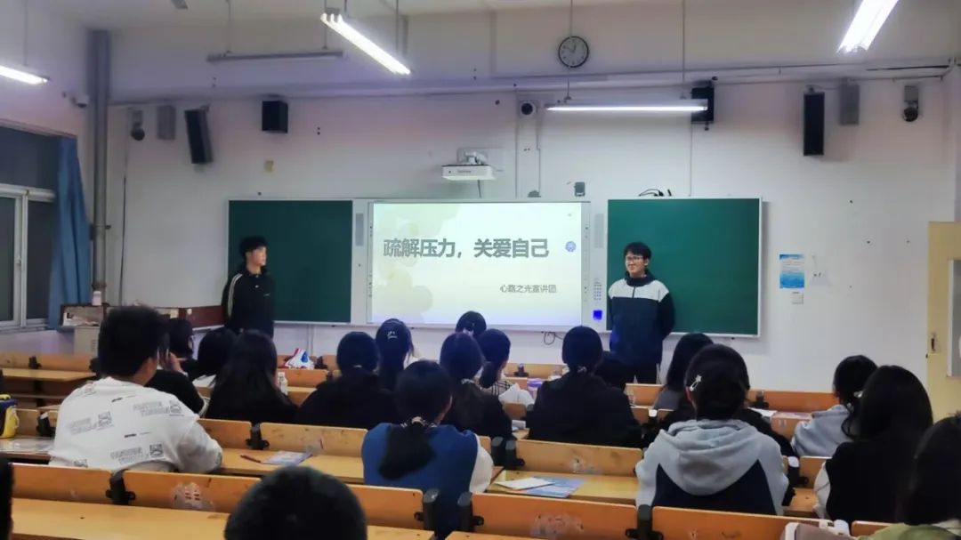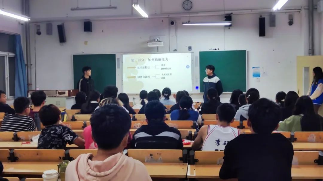 宣讲团本次的宣讲主题:疏解压力,关爱自己。宣讲团从三个方面为同学们讲解,分别是压力的来源,正确看待压力以及如何疏解压力。