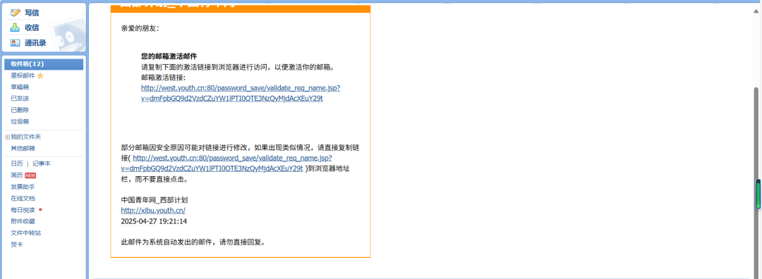 4、登录所注册的邮箱,点击邮箱激活链接地址。