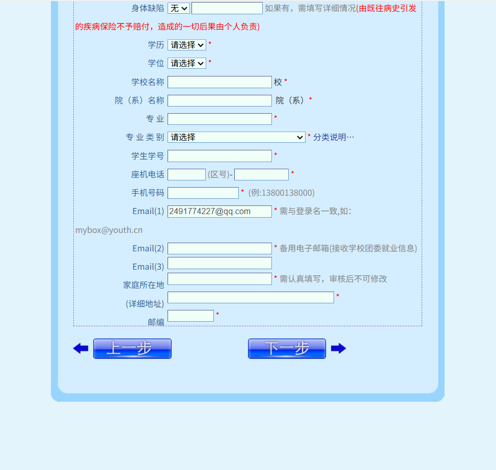 6、认真填写基本信息,填写完毕后点击“下一步”。