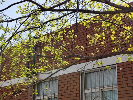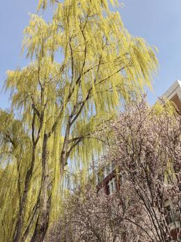 春风拂遍校园楼宇,草木萌新,生灵相伴