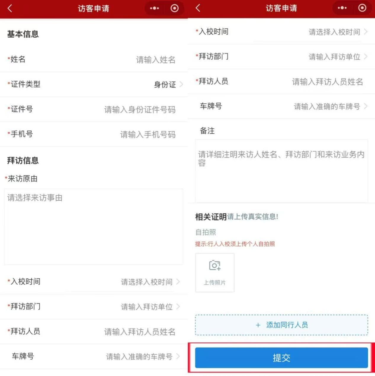 图6 入校预约和访客信息填写